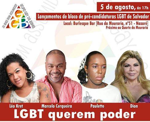 Marcelo Cerqueira, Léo Kret, Paulette Furacão e Dion Santiago se unem pelo voto LGBT. Todos podem concorrer a vaga de vereador nas próximas eleições.