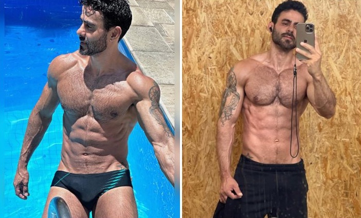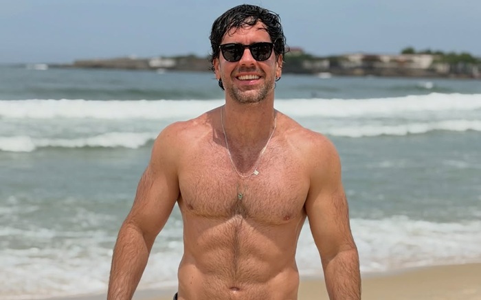 Ator de novela de 52 anos malha e volume na bermuda chama atenção