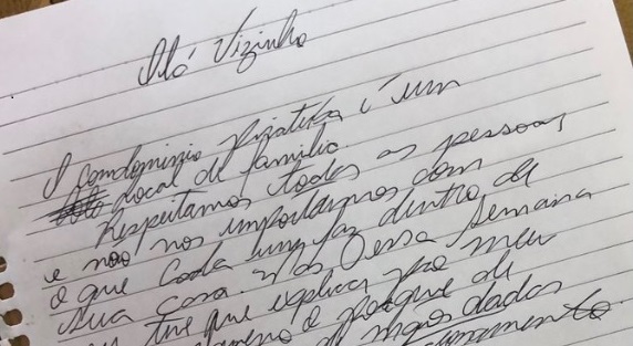 Morador manda bilhete para casal gay não se abraçar no condomínio