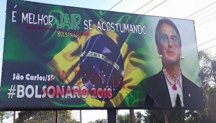 Bolsonaro aparece maquiado e com brincos em outdoor